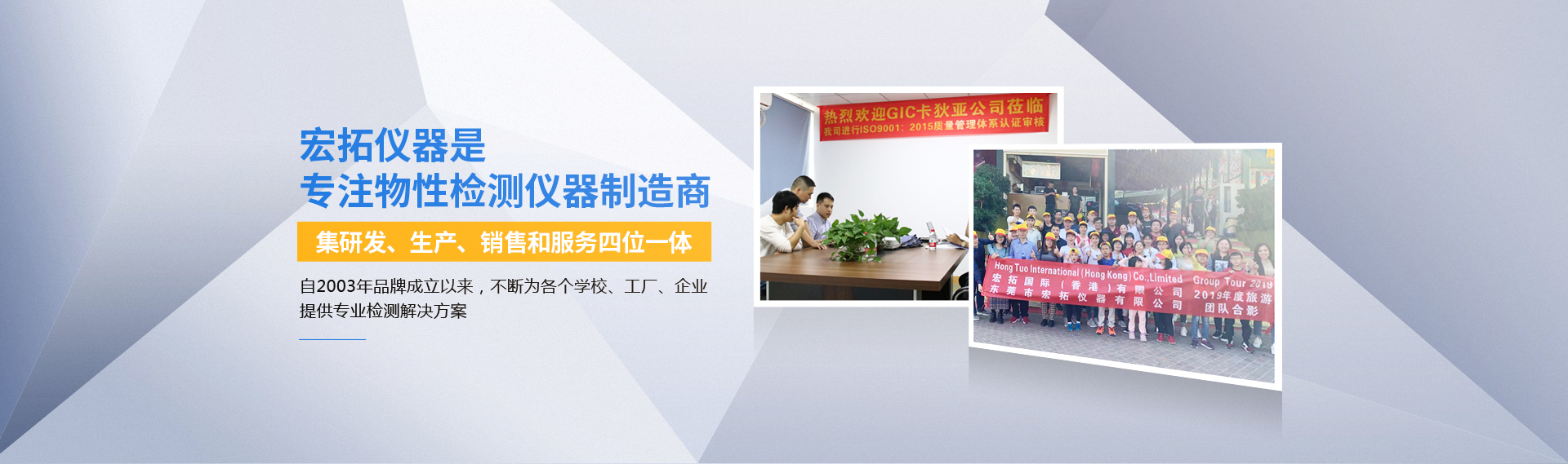 宏拓儀器重視生產過程中的質量管控,必須通過ISO9001:2015質量管理體系管理認證 目前主要產品線有:拉力試驗機、橡塑膠類儀器、環境檢測儀器、磨損類儀器、皮革鞋類儀器、紙品類儀器、箱包類儀器、電池類儀器、線纜與電工電器儀器、密度儀、水份測試儀、材料阻然性能測試儀等儀器